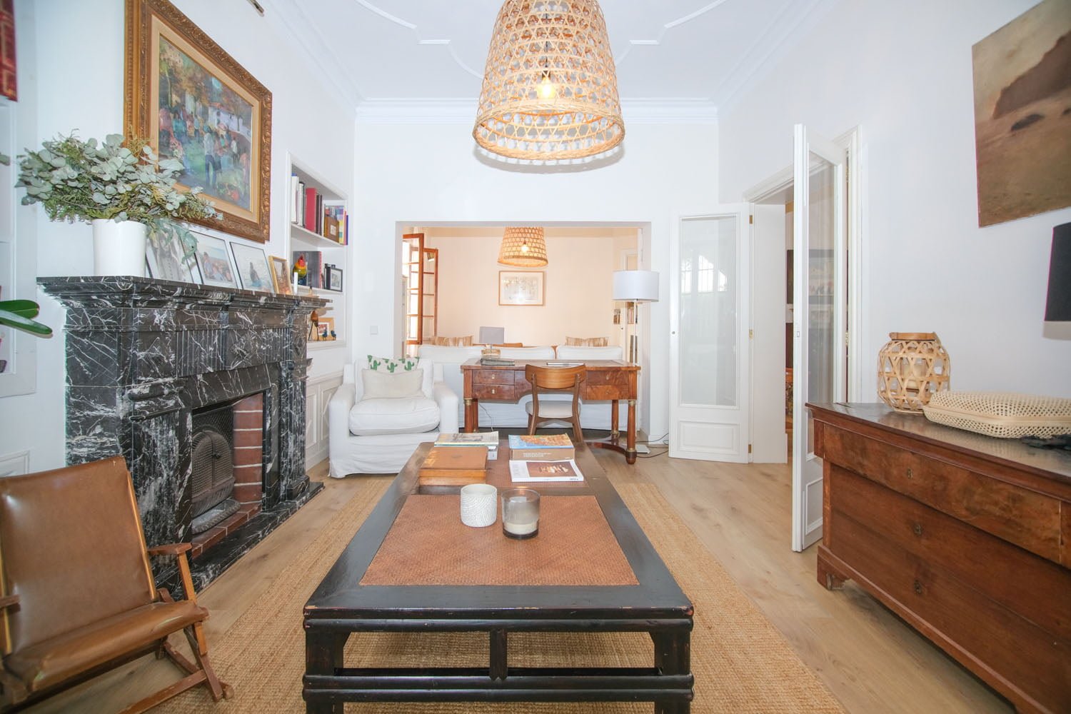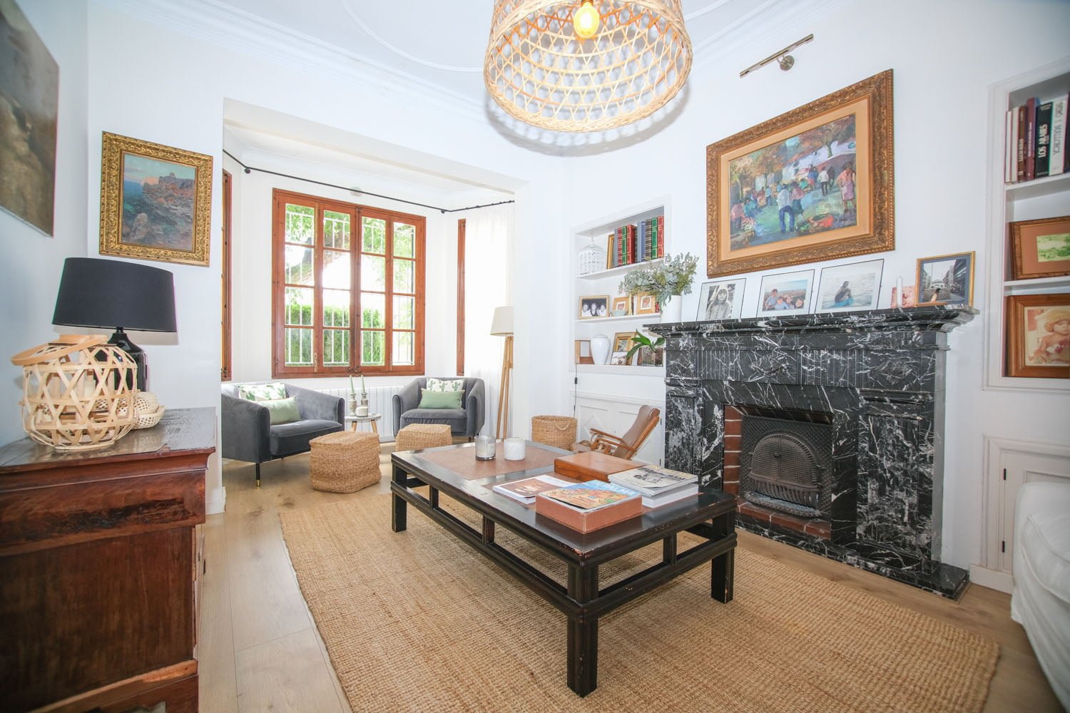 Dispone de 4 dormitorios uno de ellos con vestidor y baño en suite además de 2 baños completos y un aseo de cortesía. Cocina americana muy agradable, dos salones, uno de ellos con chimenea y comedor. También cuenta con un trastero coladuría. La casa esta reformada mantenido parte de sus elementos originales.