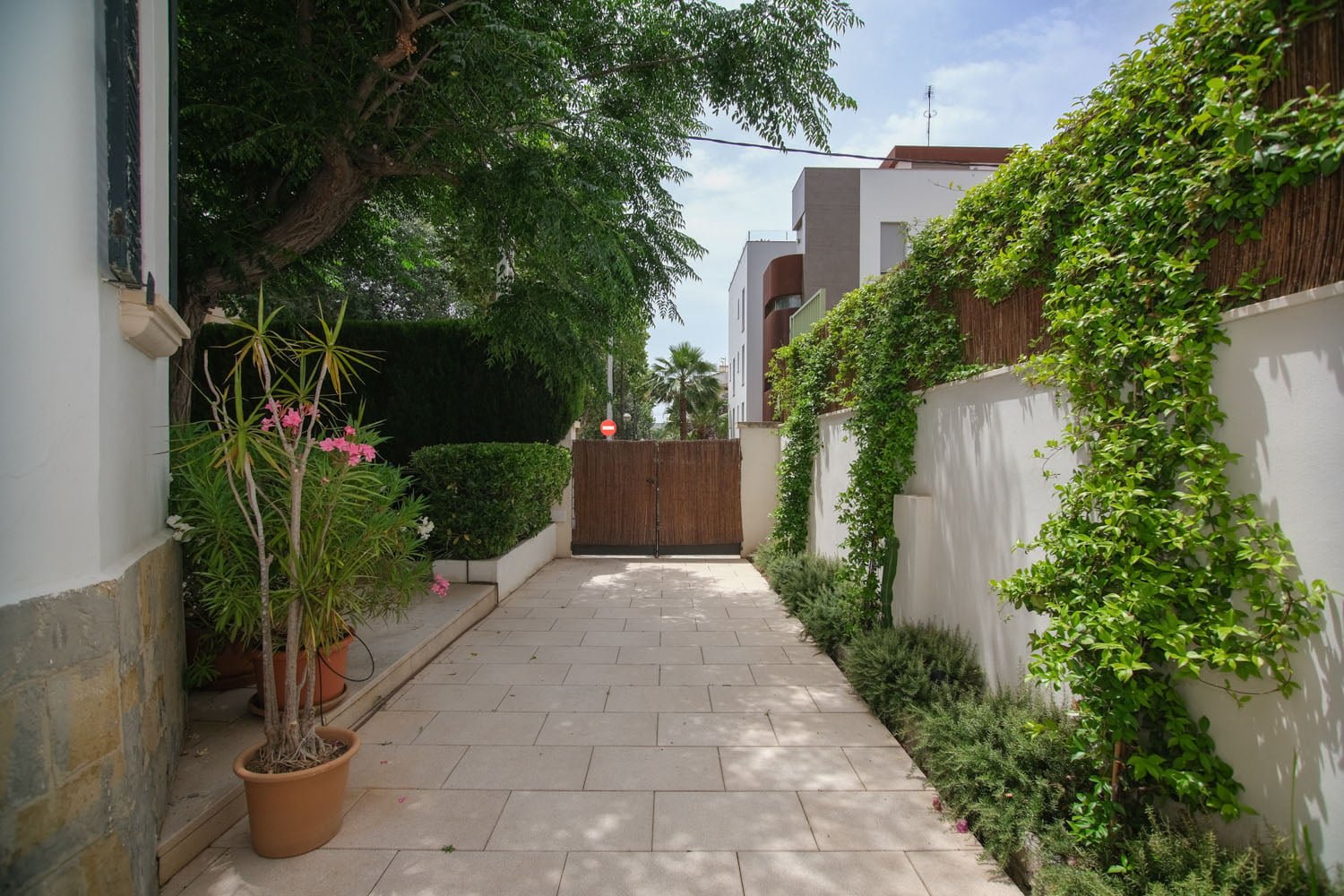 Dispone de exterior circundado toda la propiedad donde poder disfrutar de los días soleados. En la parte frontal de la casa dos Melias proveen de sombra el patio. En el exterior se encuentra una ducha para refrescarse después de un baño en el mar además de varias zonas de estar con mesas y sillas. También cuenta con dos barbacoas.Se puede aparcar con facilidad en el exterior de la vivienda y en la zona se encuentran varios hoteles en los que se puede disfrutar de sus piscinas.