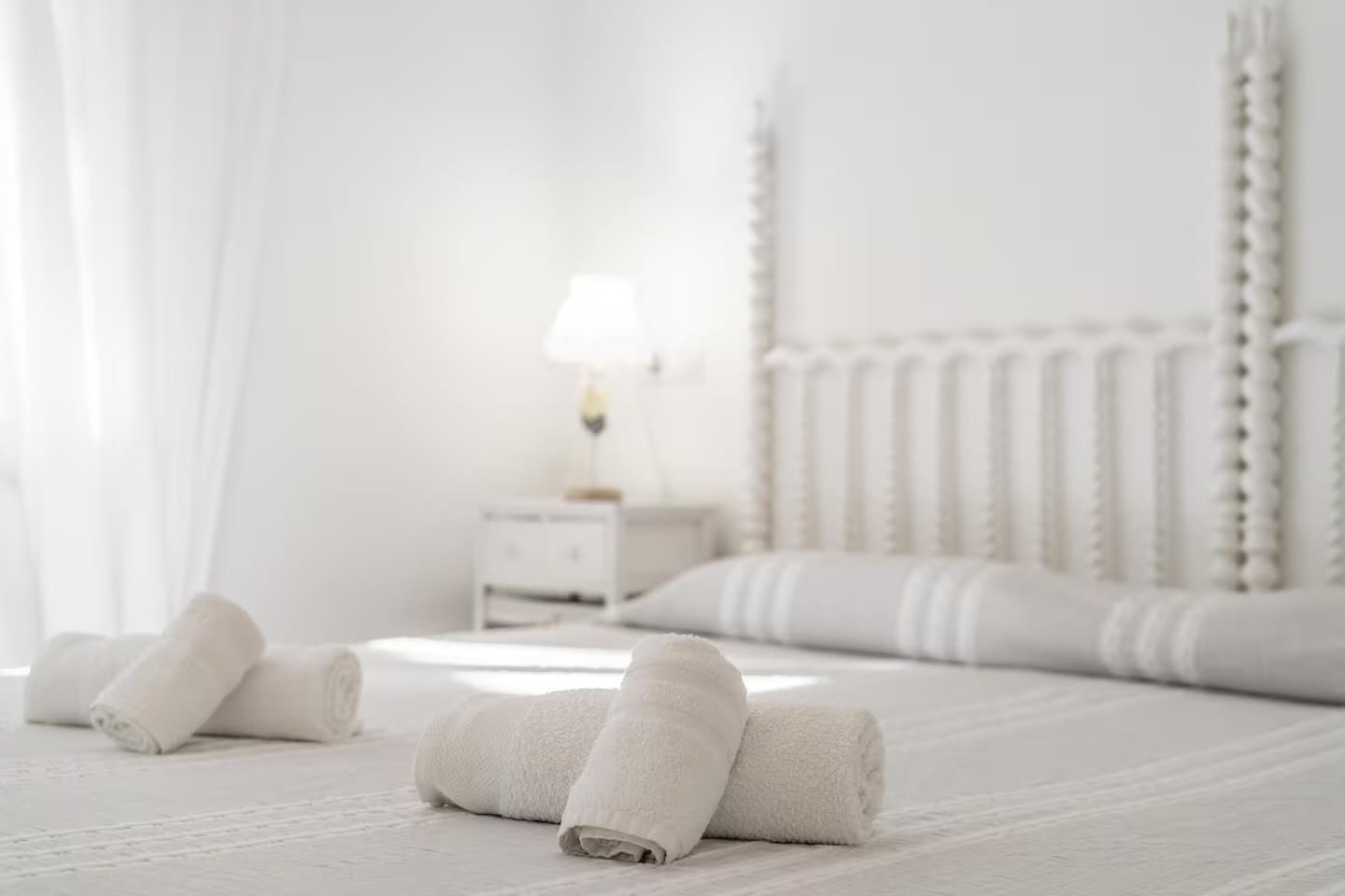En la planta superior, se encuentran tres dormitorios y dos baños completos, proporcionando un espacio cómodo y bien distribuido para el descanso. El dormitorio principal, amplio y luminoso, cuenta con baño en suite, Smart TV y acceso a una terraza privada, ofreciendo un rincón perfecto para relajarse. Un segundo dormitorio está equipado con dos literas, lo que lo convierte en una excelente opción para niños o amigos que buscan una estancia funcional y cómoda. El tercer dormitorio ofrece una distribución flexible y acceso al baño compartido de la planta.