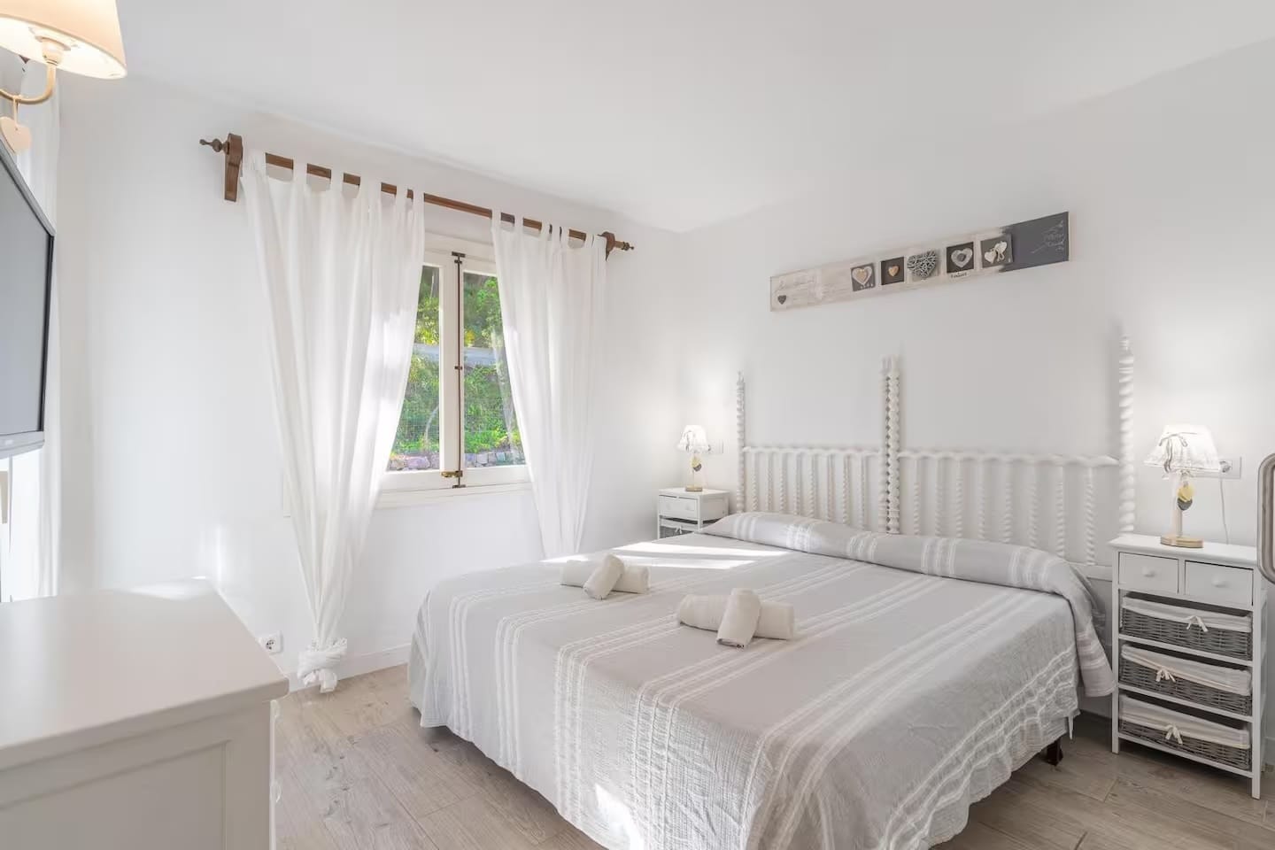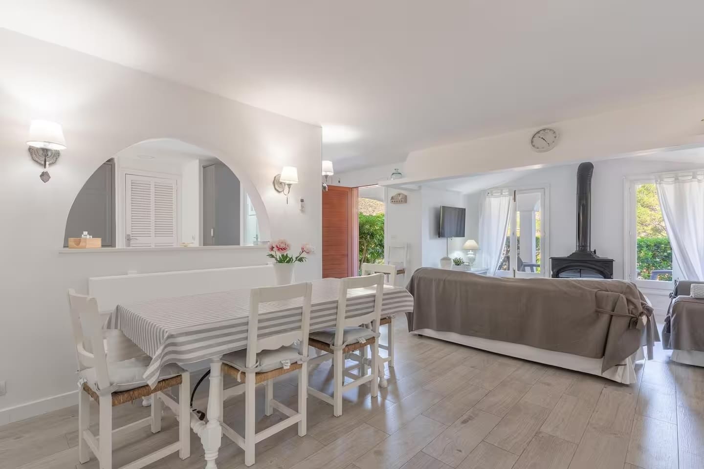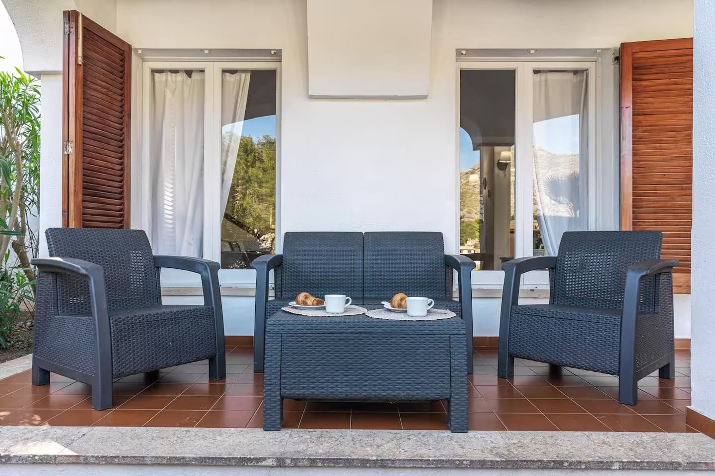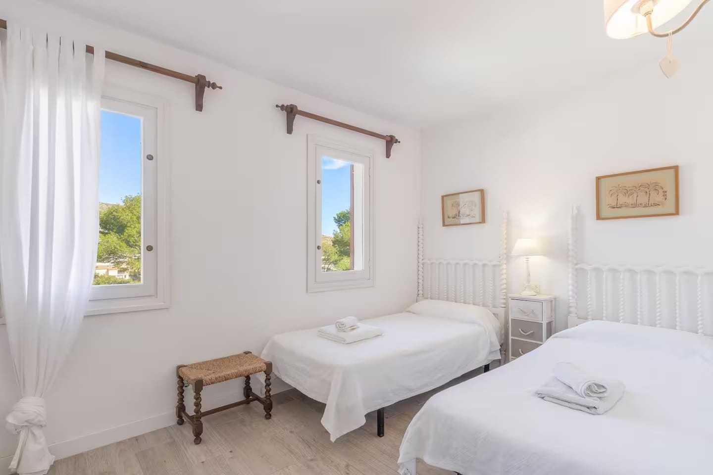 Villa Can Botana 4 es una casa adosada de dos plantas, situada en la exclusiva Cala Sant Vicenç, en Pollensa. Su ubicación permite disfrutar tanto de la playa como de la naturaleza, con el mar a pocos metros y la Serra de Tramuntana como telón de fondo.