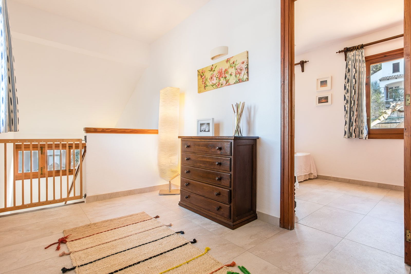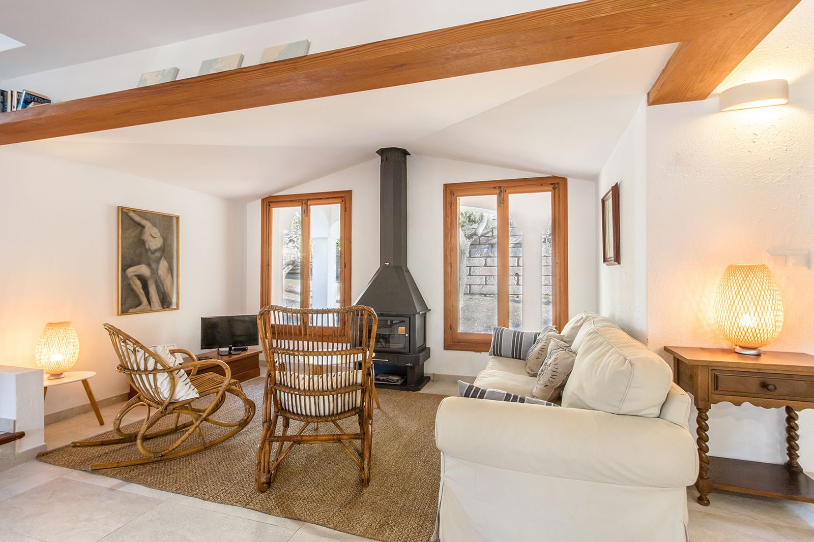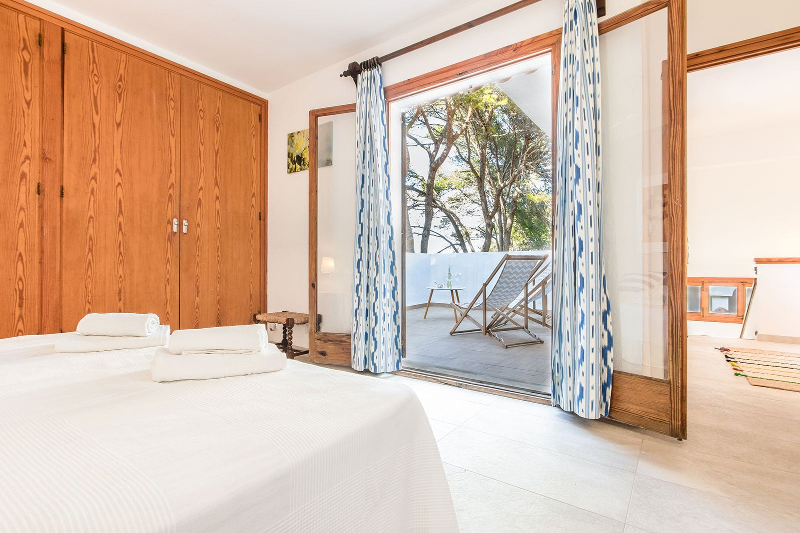 Las dos habitaciones dobles se encuentran en la planta superior, ofreciendo un espacio cómodo y tranquilo para el descanso. La habitación principal es muy amplia y tiene salida directa a la terraza.