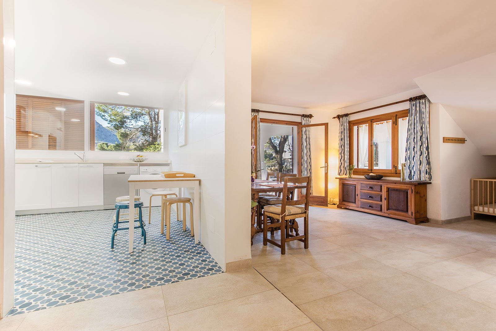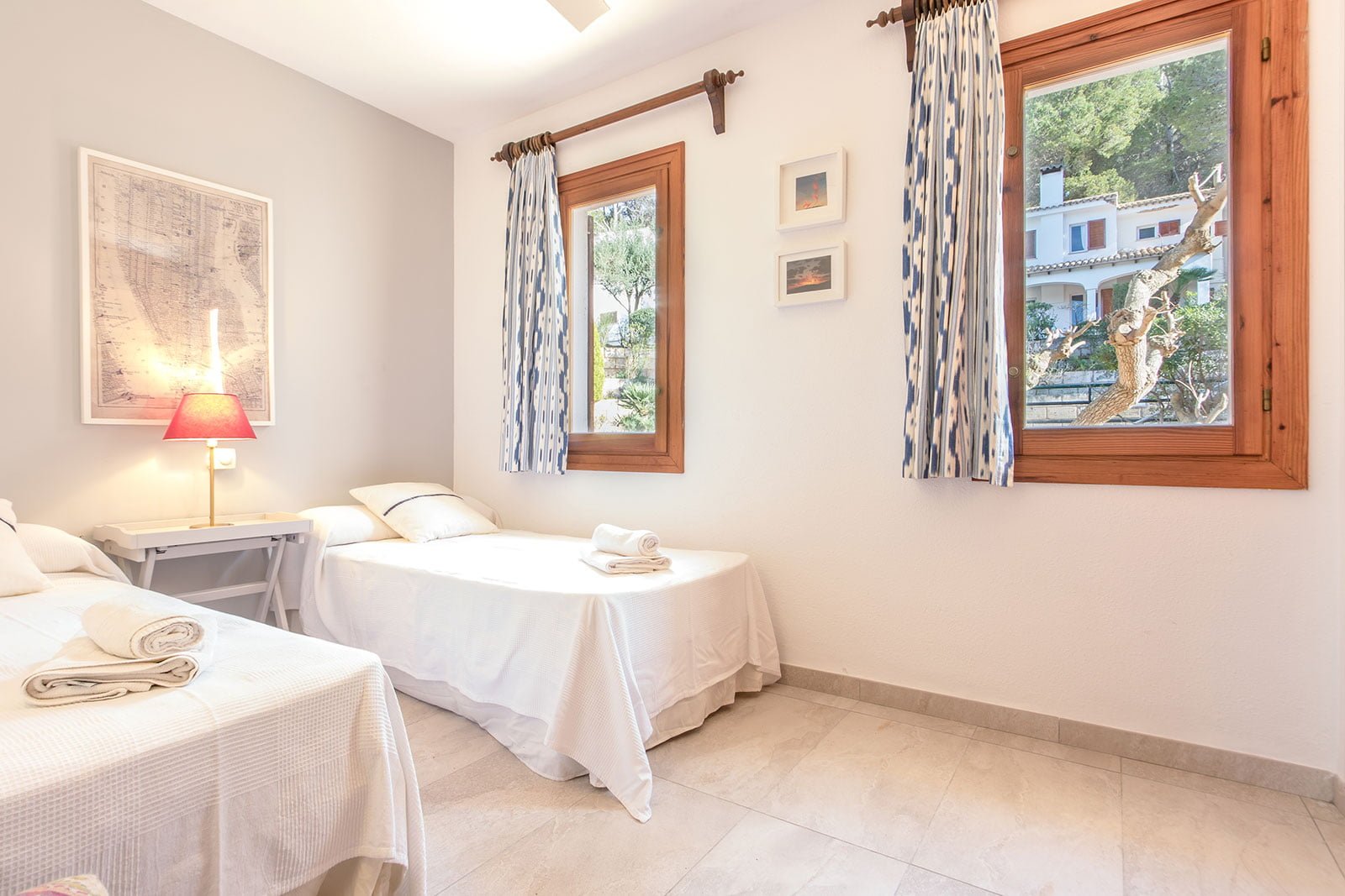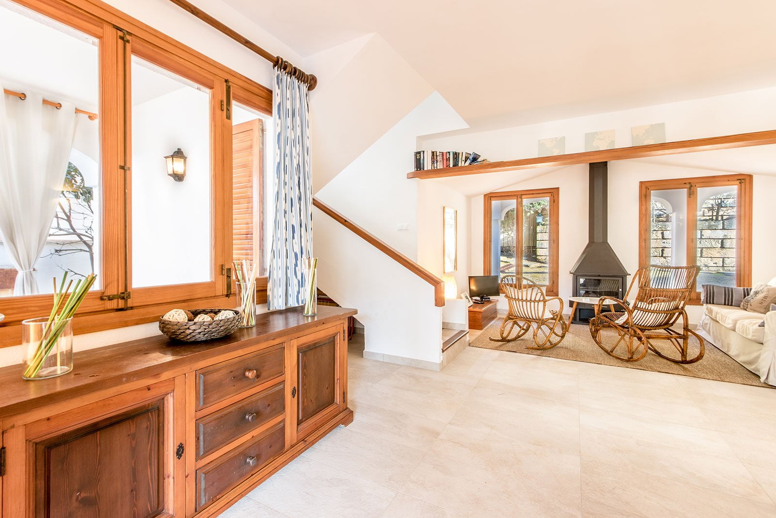 Las dos habitaciones dobles se encuentran en la planta superior, ofreciendo un espacio cómodo y tranquilo para el descanso. La habitación principal es muy amplia y tiene salida directa a la terraza.